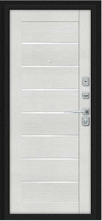 Дверь Браво Техно/BChrome Букле черное/Bianco Melinga - недорогая эконом класса по цене 3 959 руб., отлично подходит для временной установки в квартиру под сдачу, строительство, ремонт. Не смотря стоимость, модель хорошего качества.